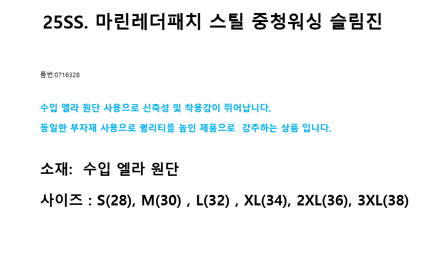 25SS. 마린레더패치 스틸 중청워싱 슬림진