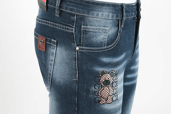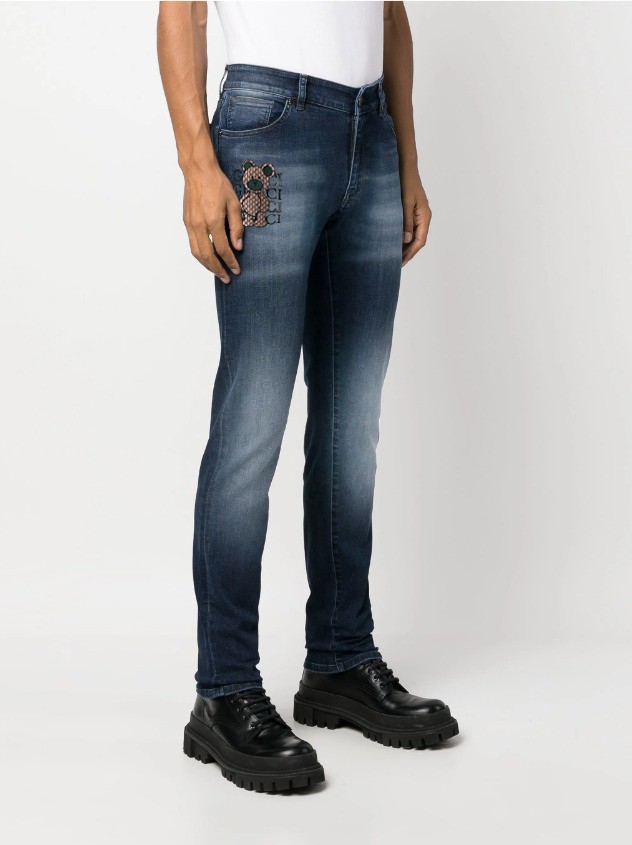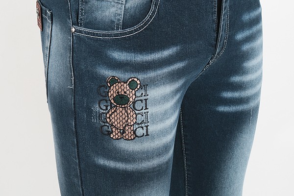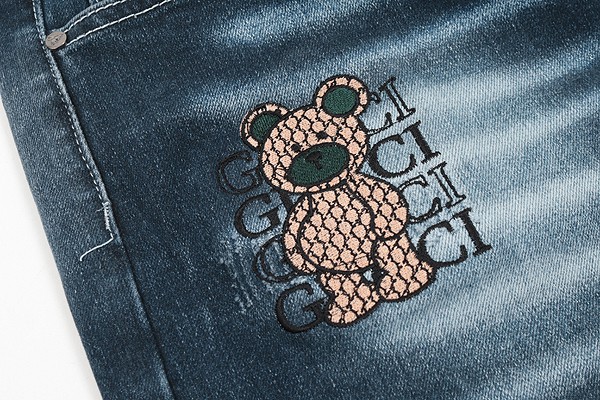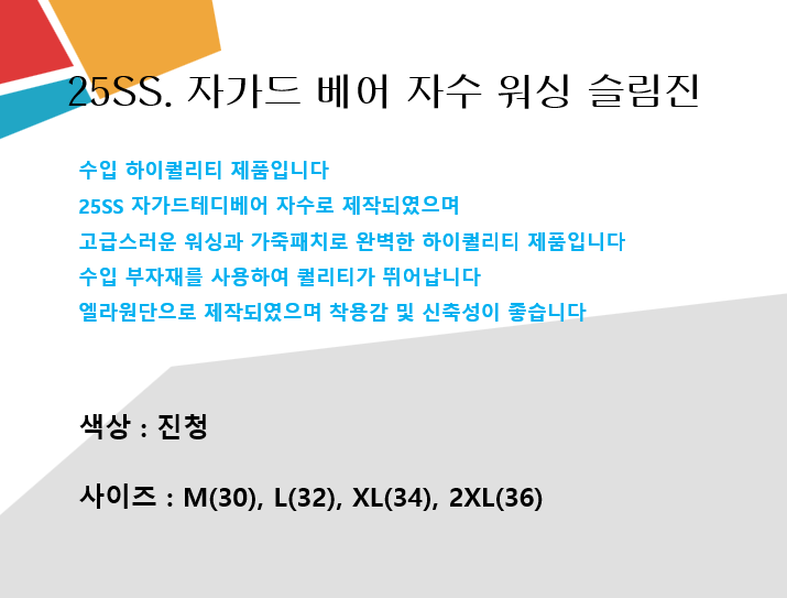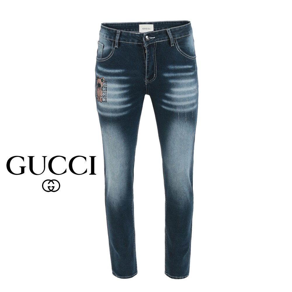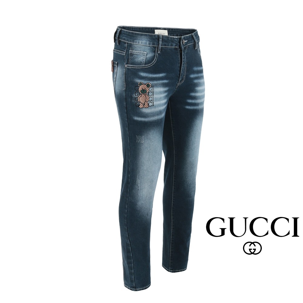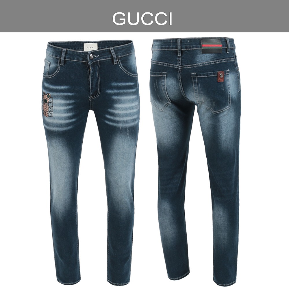 GC 25SS. 자가드 베어 자수 워싱 슬림진