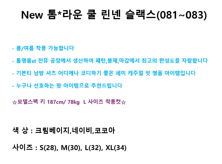 New 톰*라운 쿨 린넨 슬랙스(081~083)