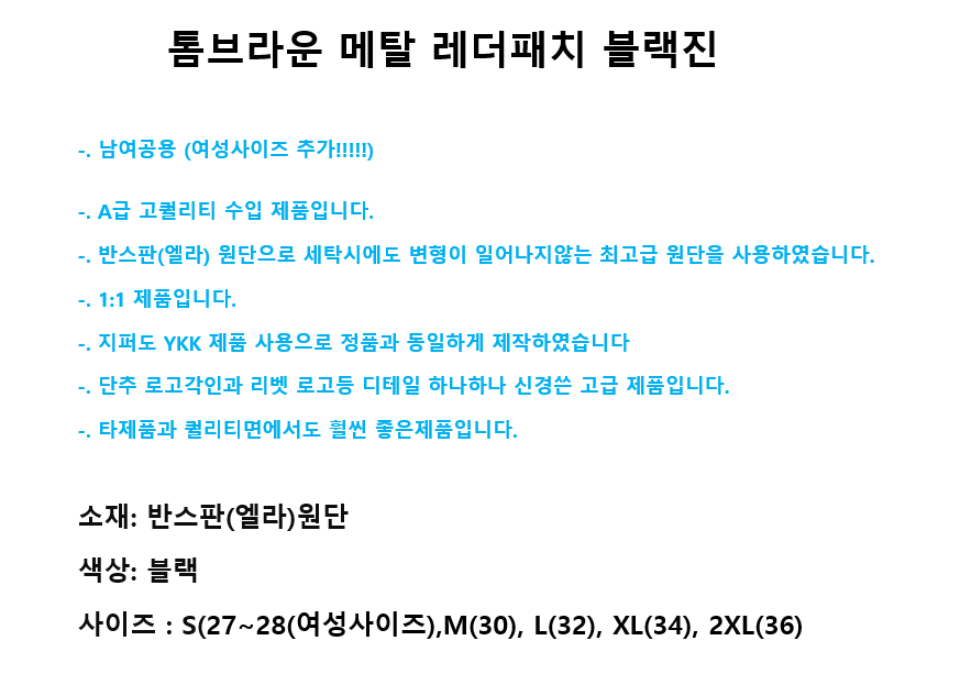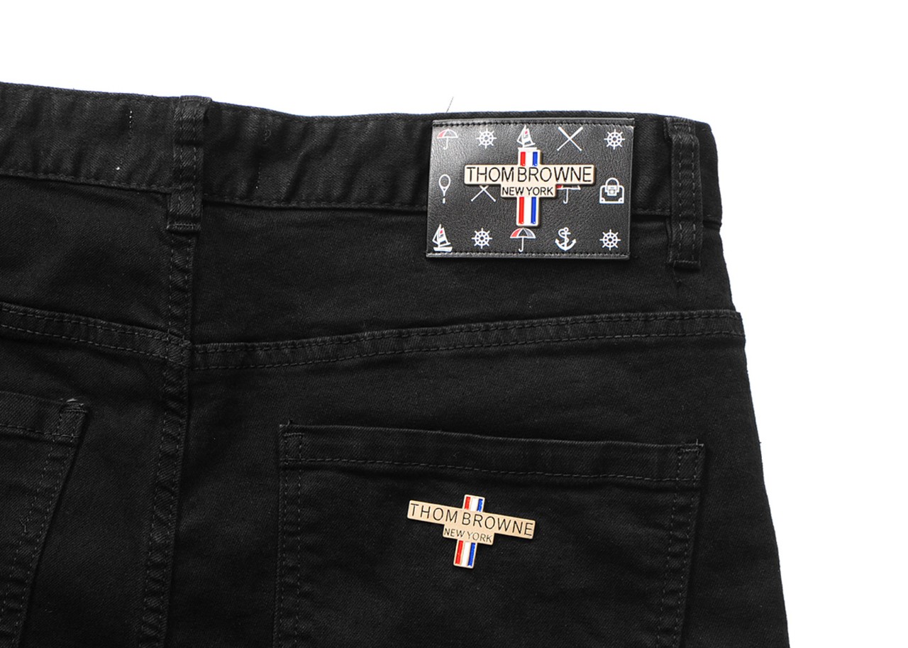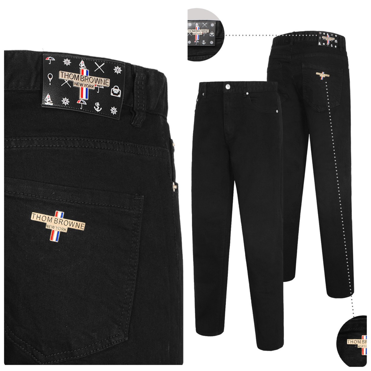 톰브라운 메탈 레더패치 블랙진