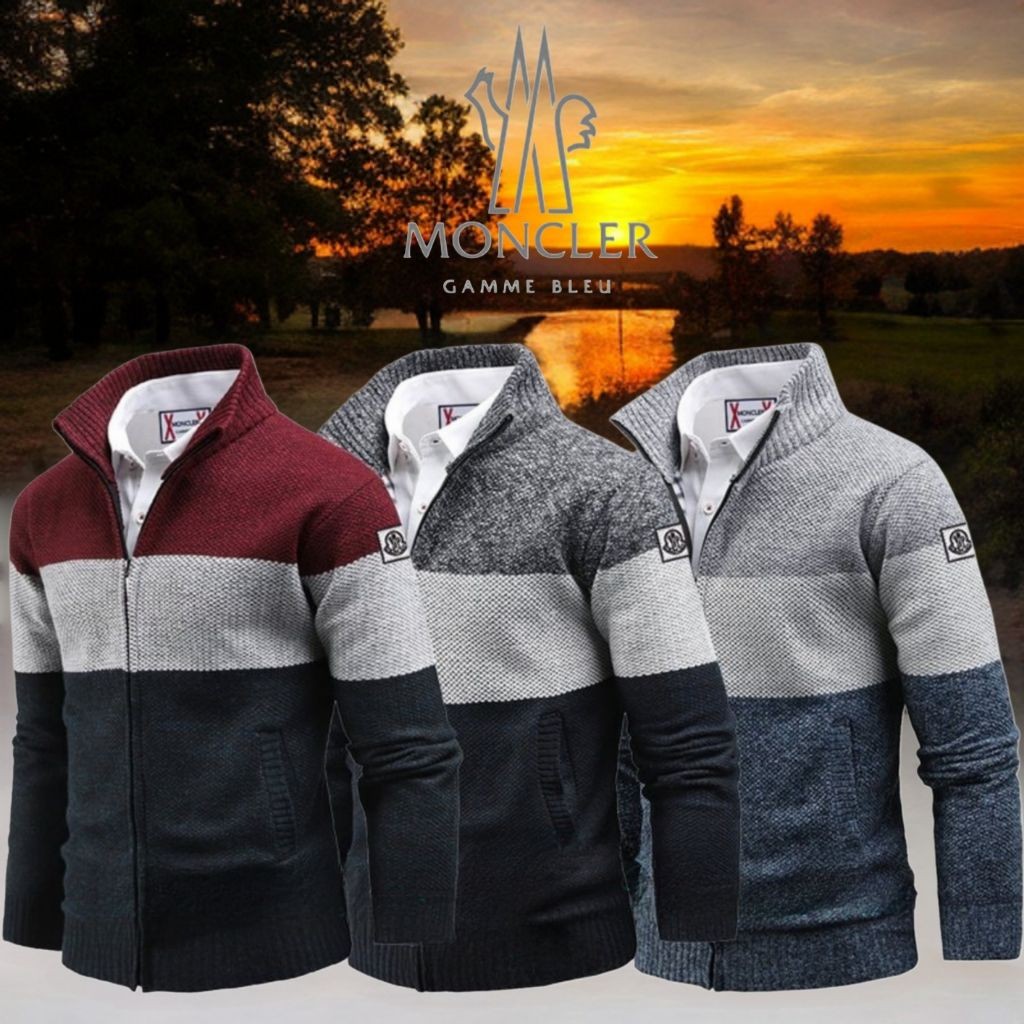 몽클레어 감마블루 삼색니트 기모집업
