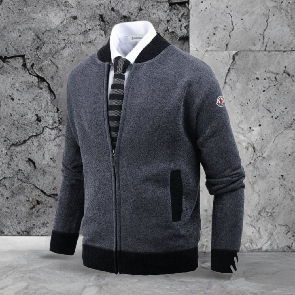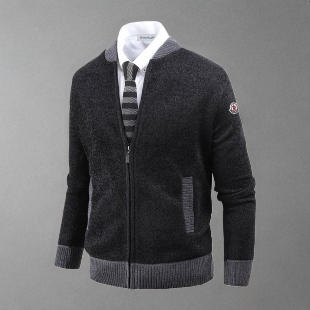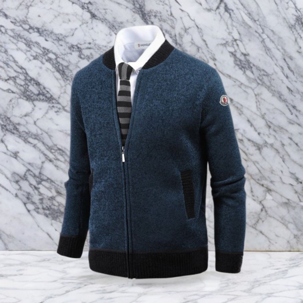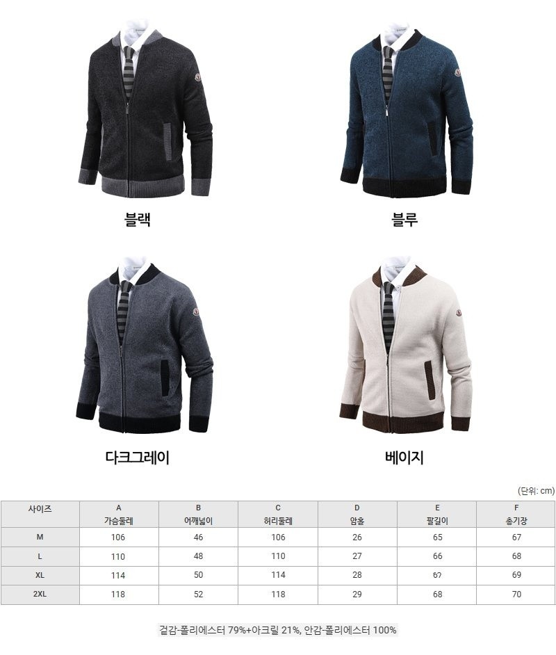 몽클레어 기모 투톤 블루종 니트집업