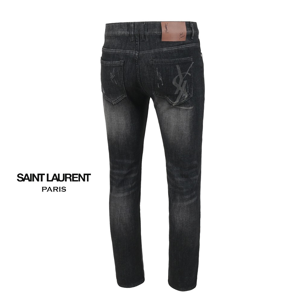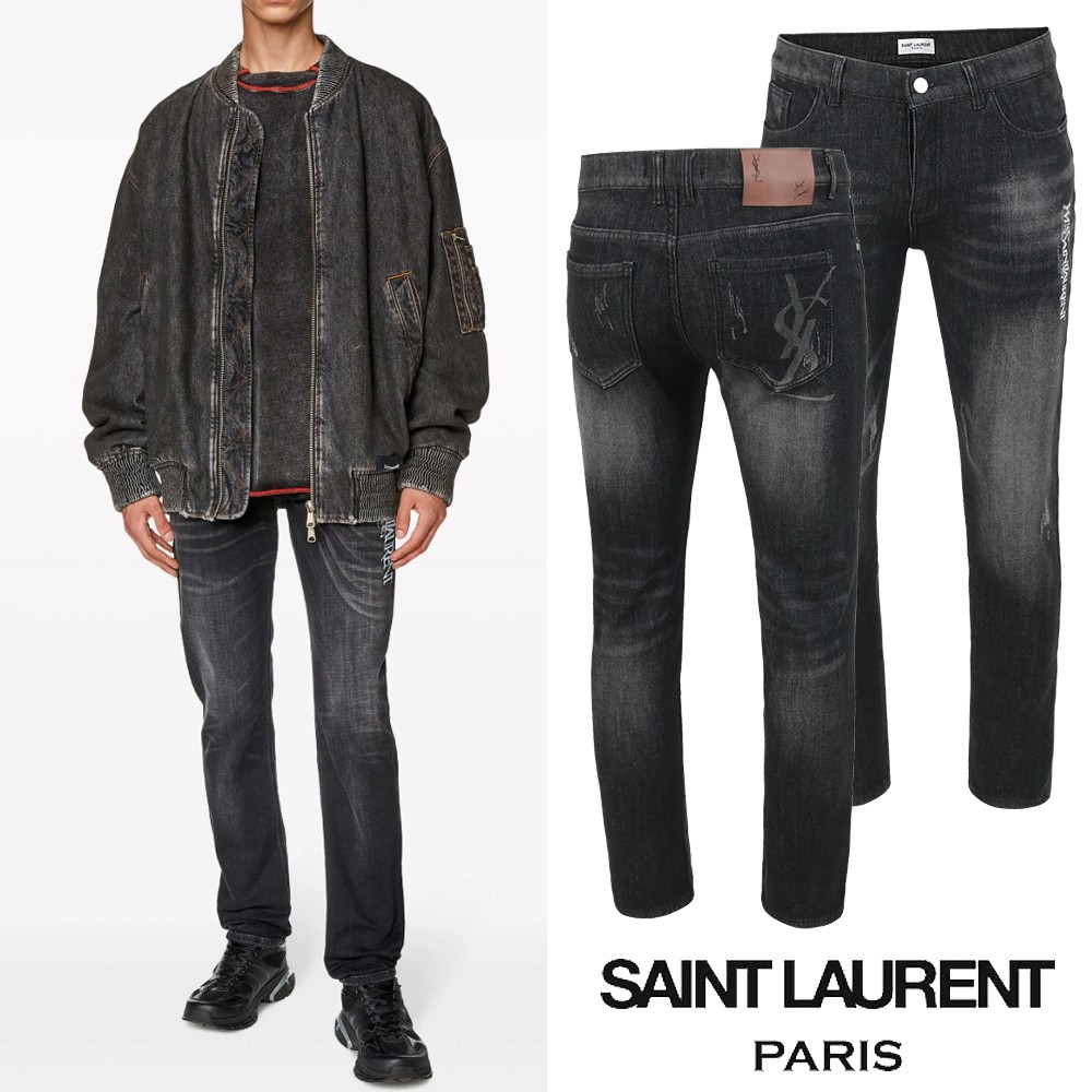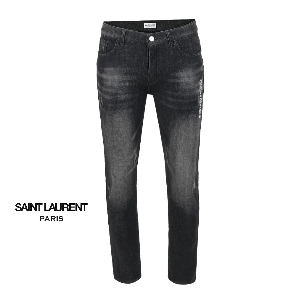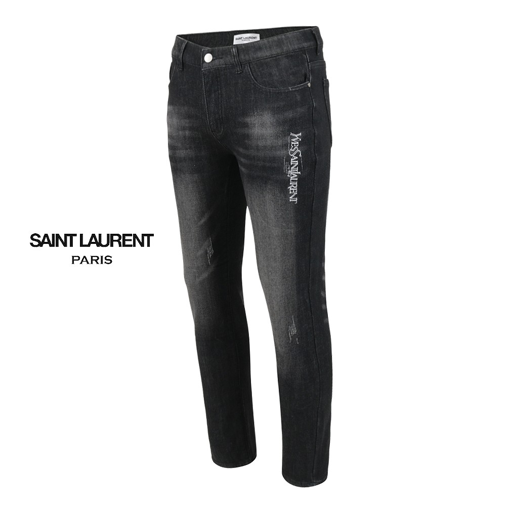 세인트 로랑 레터링 자수 빅로고 융기모 흑청 슬림진