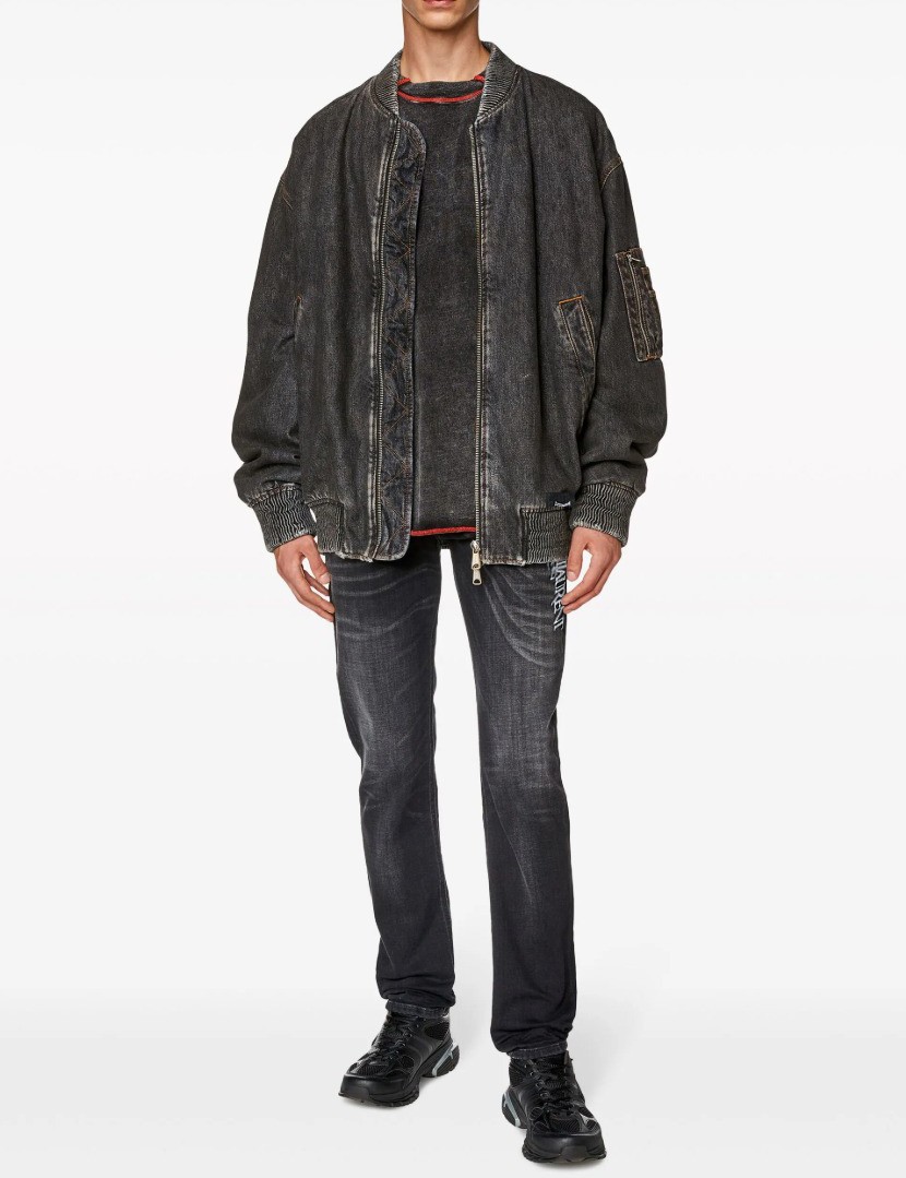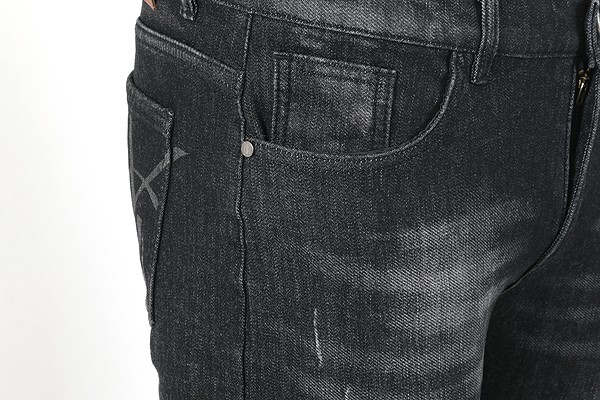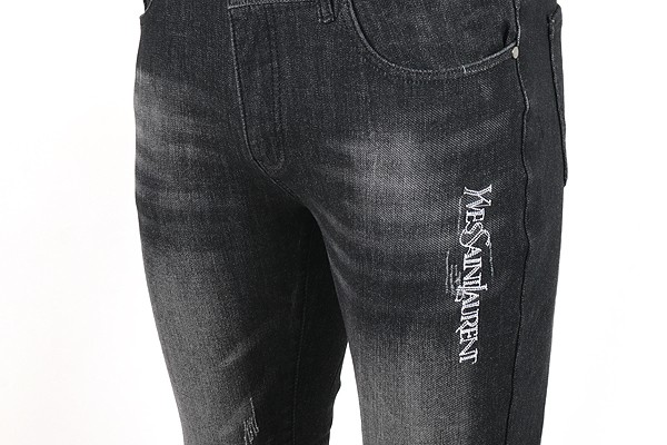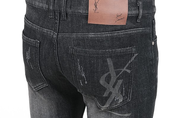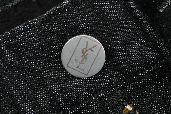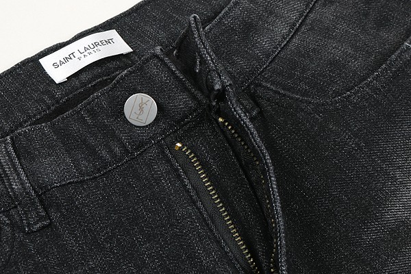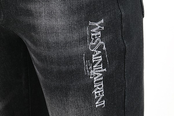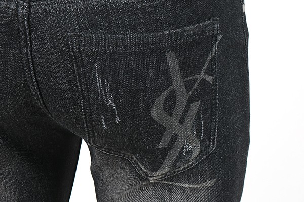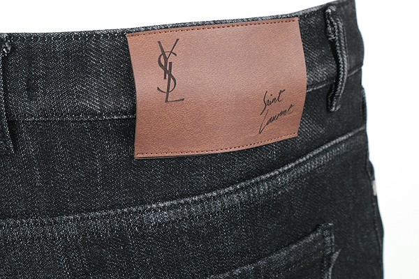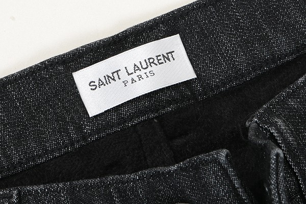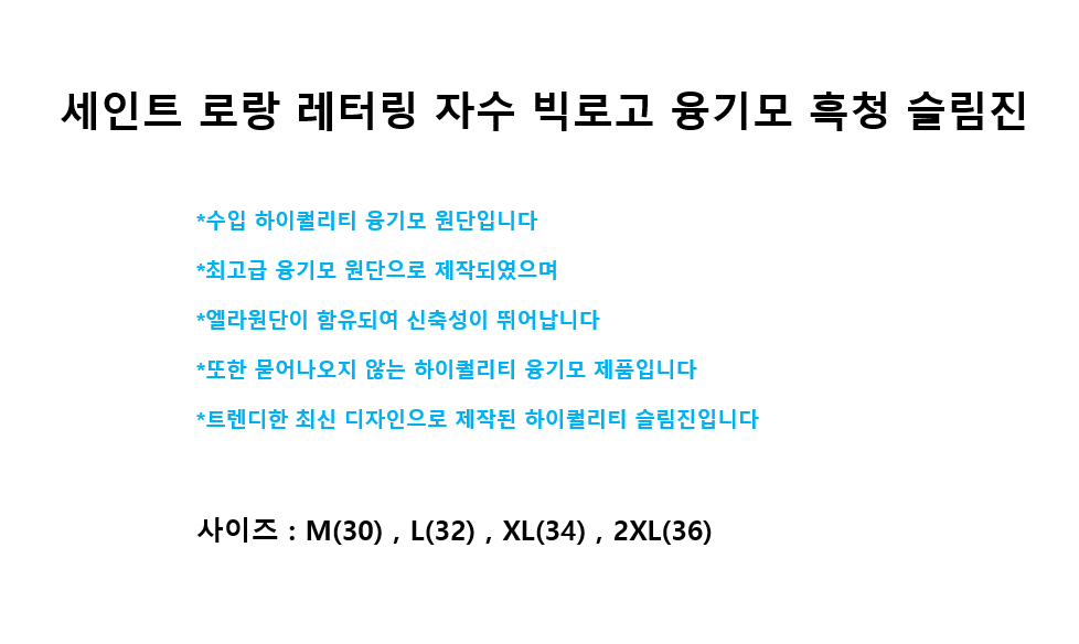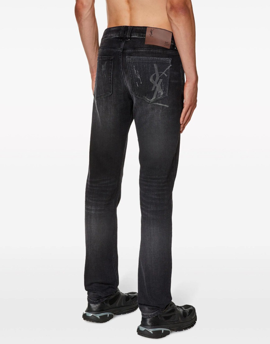 세인트 로랑 레터링 자수 빅로고 융기모 흑청 슬림진