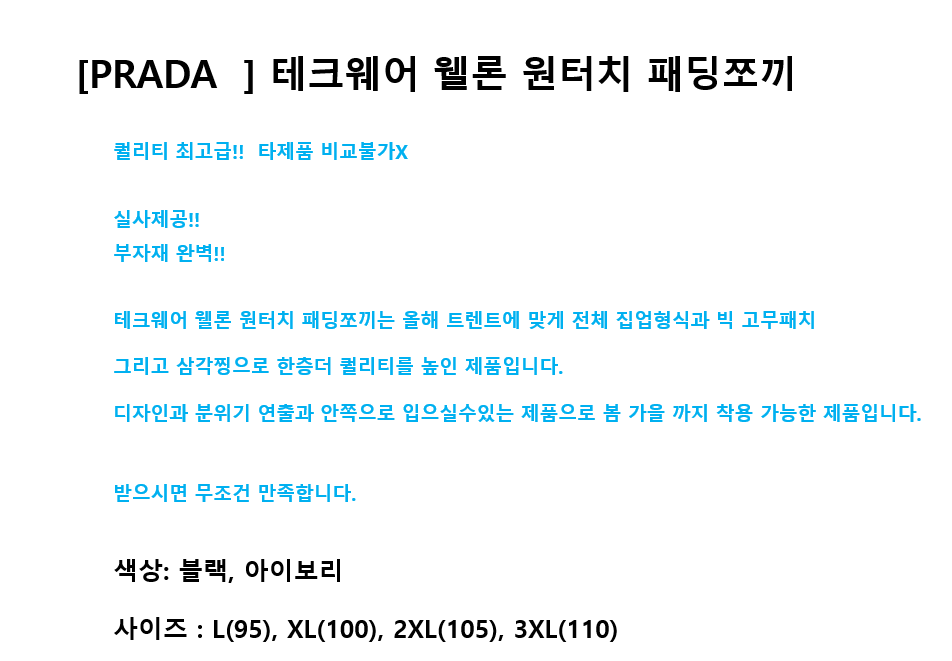 [PRADA] 테크웨어 웰론 원터치 패딩조끼