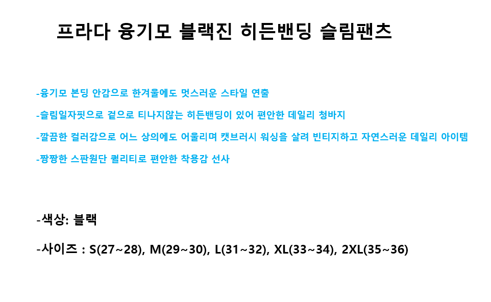 프라다 융기모 블랙진 히든밴딩 슬림팬츠
