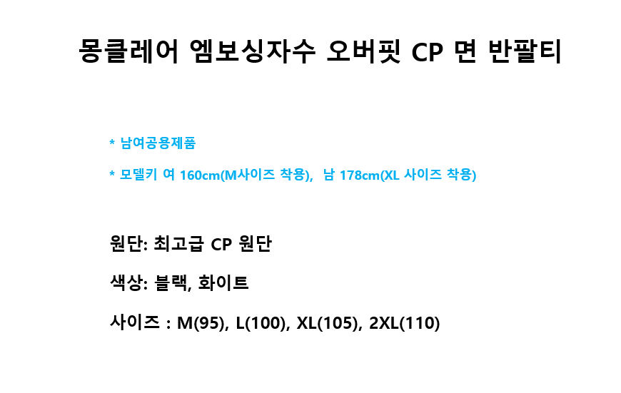 몽클레어 엠보싱자수 오버핏 CP 면 반팔티