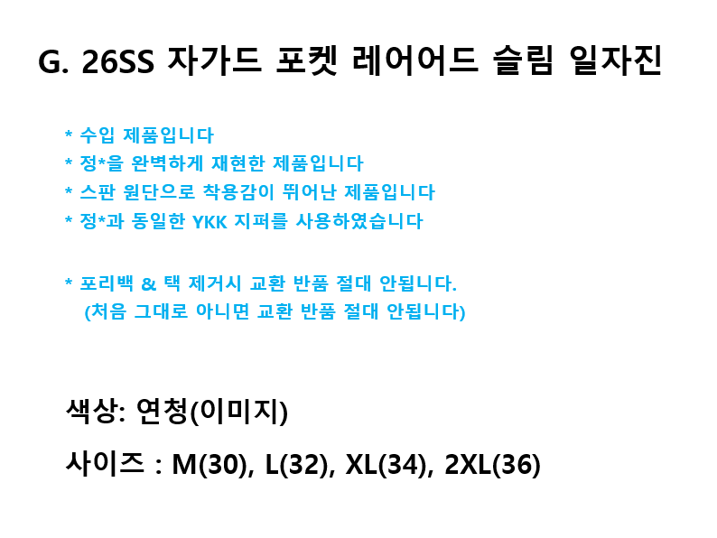 G. 26SS 자가드 포켓 레어어드 슬림 일자진