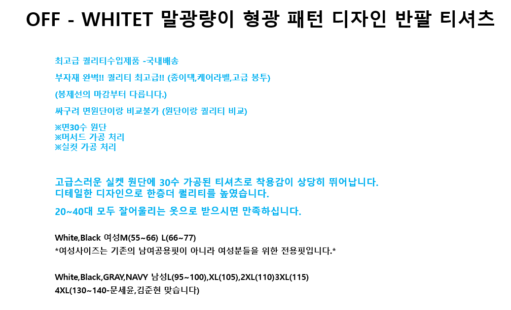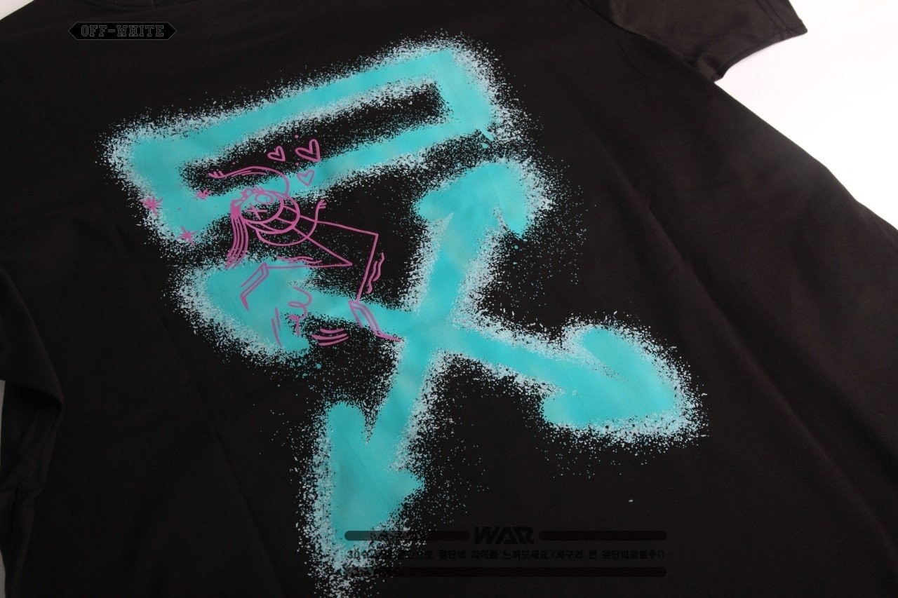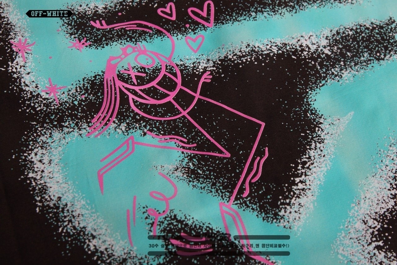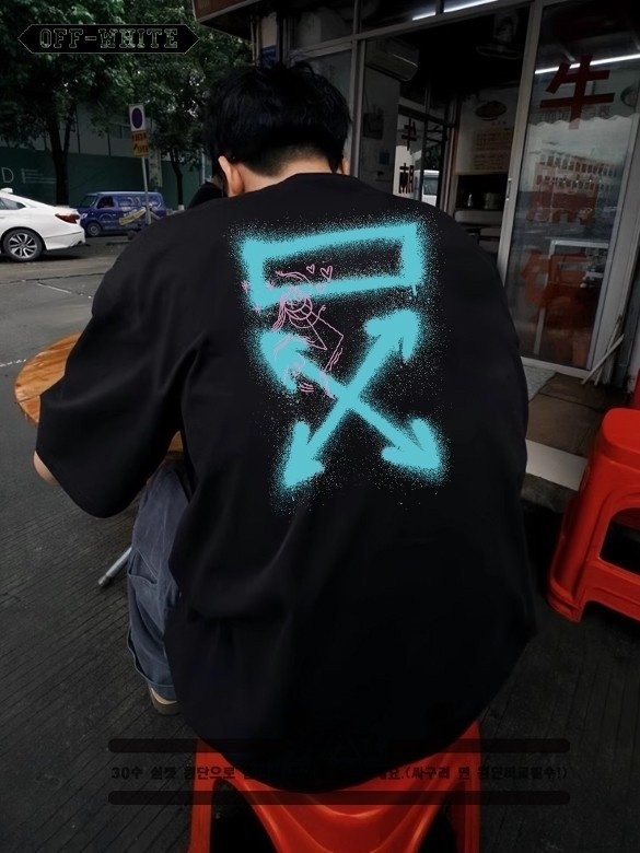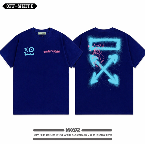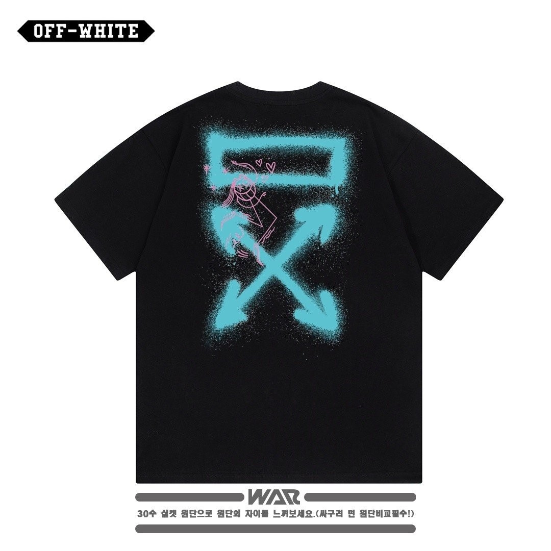 [빅사이즈까지]OFF - WHITET 말광량이 형광 패턴 디자인 반팔 티셔츠